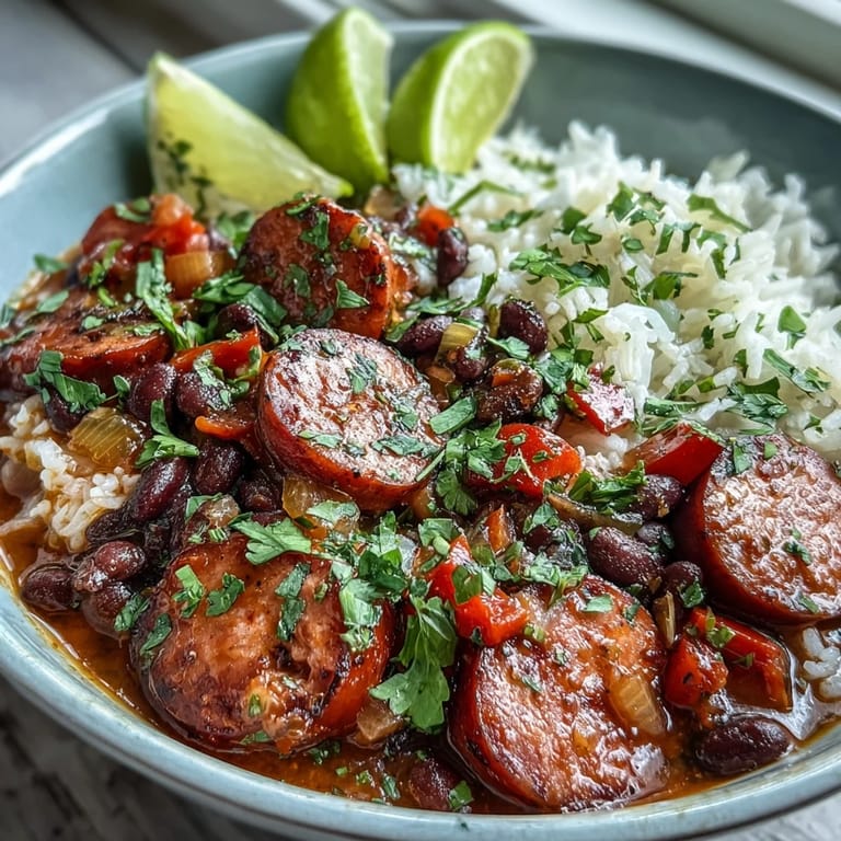 Save The smell of smoked sausage hitting a hot skillet takes me back to my first apartment, where I learned that a single pan could solve dinner on the most exhausting days. This Black Bean, Sausage, and Rice Skillet started as a desperate attempt to use up random pantry staples, but it quickly became one of those meals I could make without even thinking. Something about the way the rice soaks up all those smoky, spiced flavors makes it feel like comfort food that actually took effort.