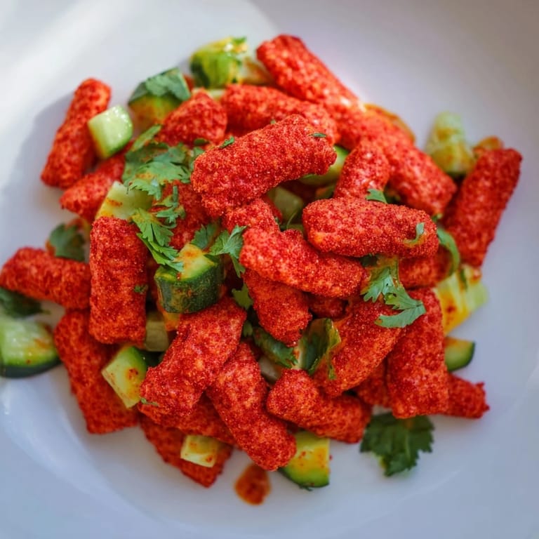 Save My friend Sarah texted me a photo of a salad she'd thrown together at 11 PM before a late-night hangout, and honestly, it looked ridiculous in the best way—neon orange Cheetos mixed with bright green cilantro and cucumber, all glistening with lime and hot sauce. I laughed out loud, then immediately made one. It was the kind of snack that shouldn't work but absolutely does, tangy and spicy and crunchy all at once, like someone finally gave permission to break every salad rule.