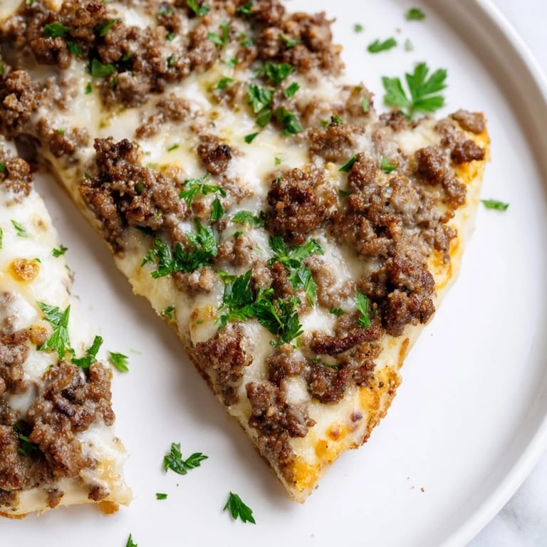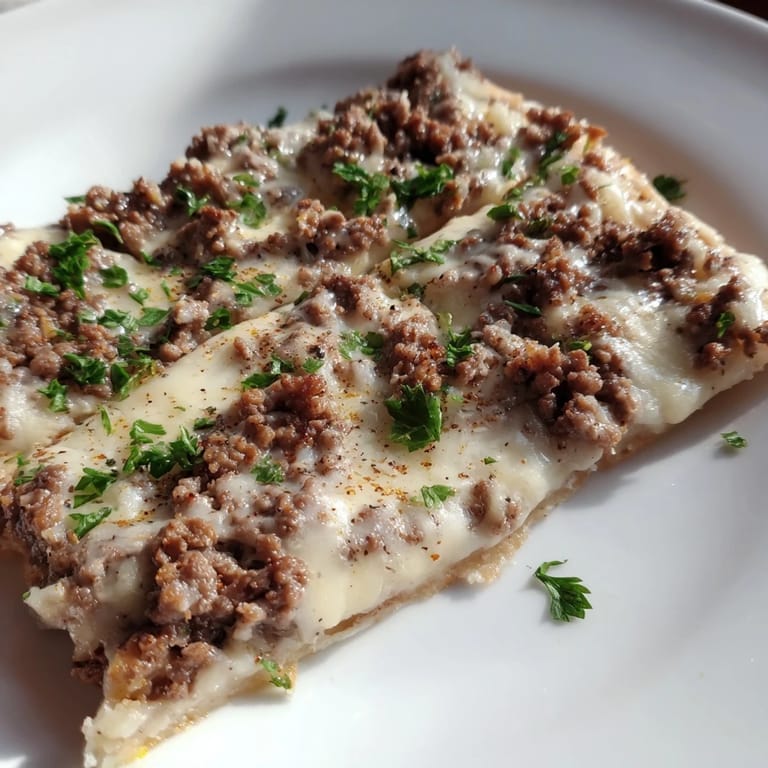 Save I discovered this pizza by accident on a weeknight when I had cream in the fridge that was about to expire and ground beef thawing on the counter. My first instinct was to make a traditional meat sauce, but then I thought—why not lean into something richer, creamier? I whisked together an Alfredo and spread it over dough like I was breaking every pizza rule I knew. The result was so good my family asked for it again before I'd even finished eating my first slice.