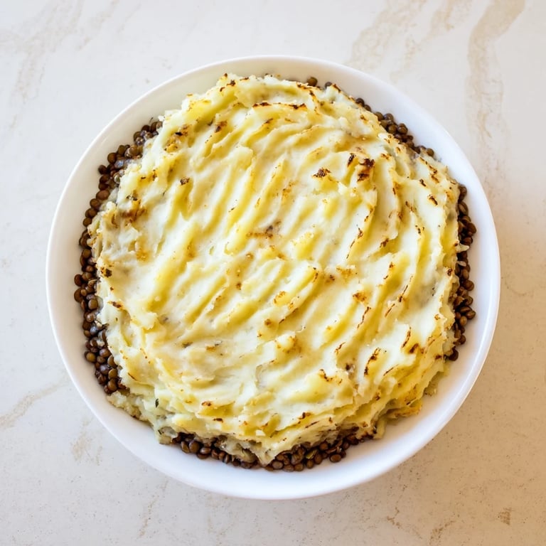 Save A comforting vegetarian twist on the classic shepherds pie, featuring a savory lentil and vegetable filling topped with creamy mashed potatoes, baked to golden perfection.