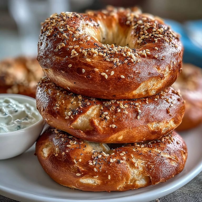 For extra softness, cover bagels with a clean towel immediately after baking to trap steam and keep them tender. When kneading the dough, add flour sparingly—you want the dough to be slightly tacky but not sticky. If the dough feels too dry, add a teaspoon of water at a time until it comes together smoothly. For the most even baking, rotate your baking sheet halfway through the cooking time. The egg wash is essential for achieving that beautiful golden-brown color and helps the everything seasoning adhere perfectly to each bagel.