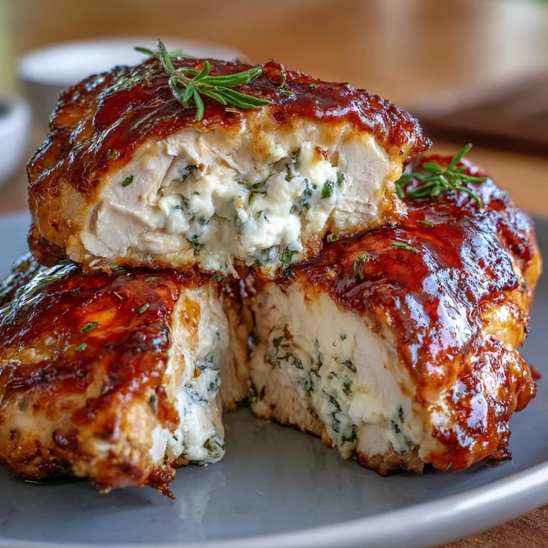 Save There's something magical about watching a chicken breast transform from ordinary to show-stopping, and it happened in my kitchen on a Tuesday night when I decided to stop playing it safe with dinner. My partner mentioned craving something bold and unexpected, so I grabbed ricotta, fresh herbs, and honey—not thinking much beyond the moment. That first bite, when the creamy filling released into the sweet-spicy glaze, made me realize I'd stumbled onto something worth making again and again.
