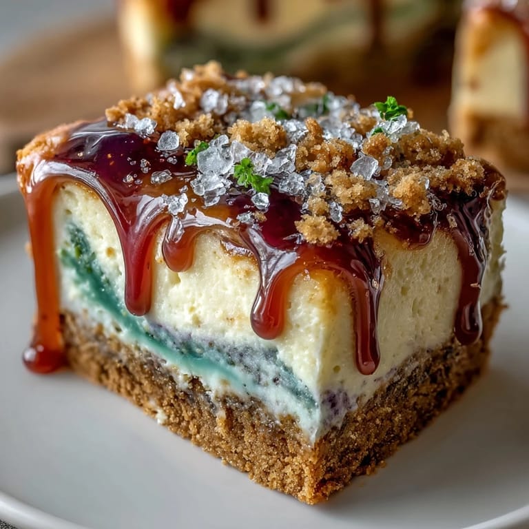 Save My friend texted me a photo of king cake from New Orleans at 11 PM on a random Tuesday, and suddenly I was possessed with the need to make something that tasted like Mardi Gras but felt like cheesecake. The idea of swirling purple, green, and gold into creamy filling sounded chaotic and perfect. I'd never combined these two desserts before, but standing in my kitchen at midnight with gel food coloring and cream cheese, it felt like the most obvious fusion ever. These bars arrived at my office potluck the next day and disappeared so fast I barely got to try one myself.