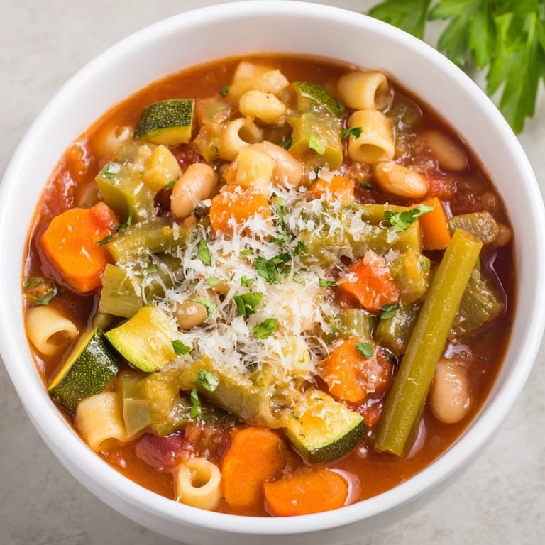 Save A hearty, comforting Italian vegetable soup brimming with beans, pasta, and garden-fresh vegetables all simmered in one pot for easy cleanup.