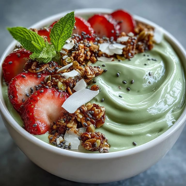 There's actually a technique to making these bowls feel special instead of just messy. The key is understanding contrast—you want soft smoothie against crunchy granola, sweetness against nuttiness, colors that pop against that green base. When you arrange toppings thoughtfully, you're not just feeding yourself, you're creating an experience that slows you down naturally. I started organizing toppings in sections after watching a friend eat one with terrible technique, flinging granola everywhere, and realizing that having clear zones actually makes eating more enjoyable.